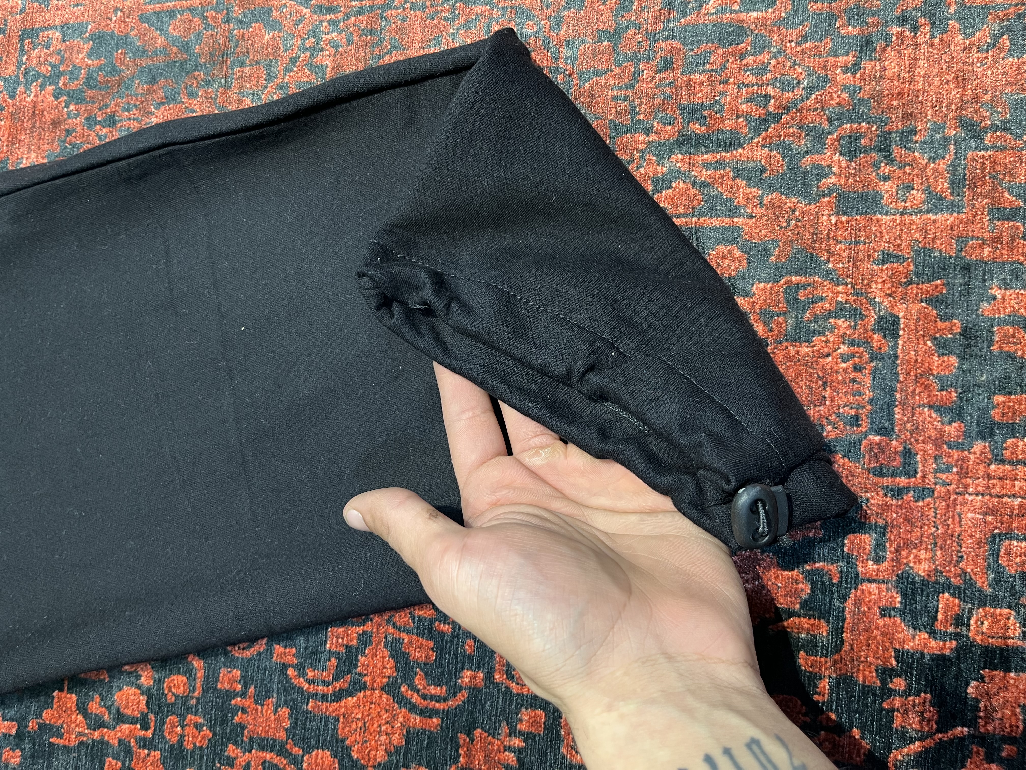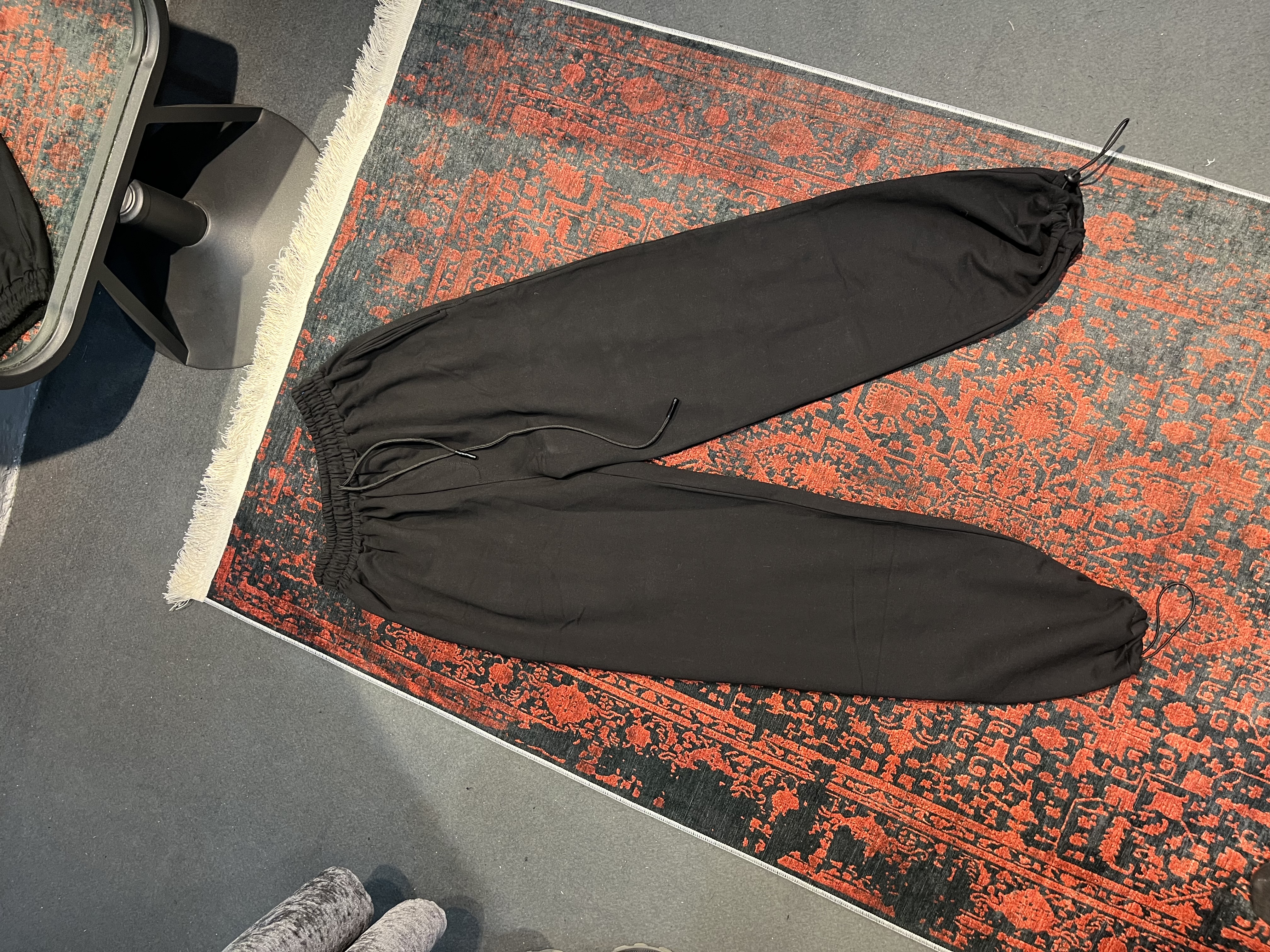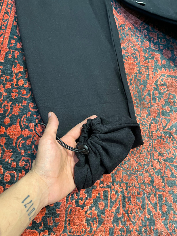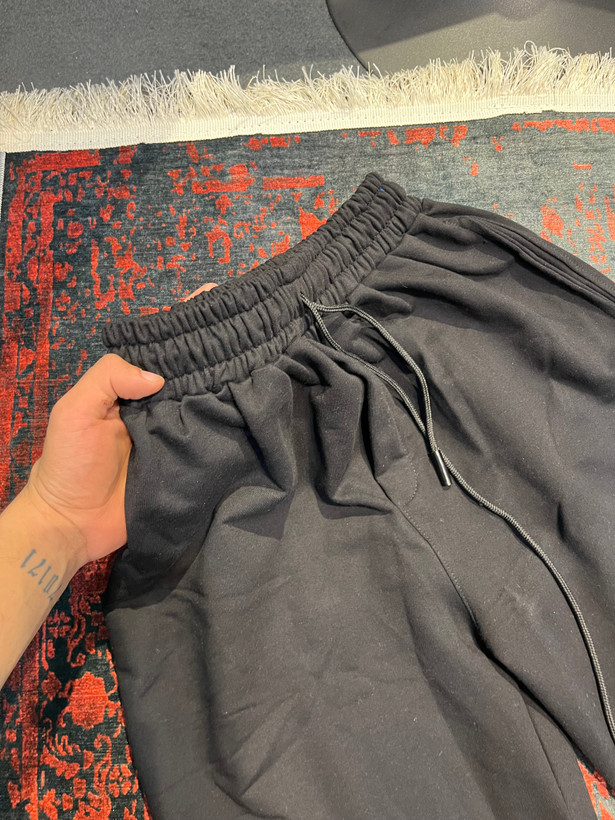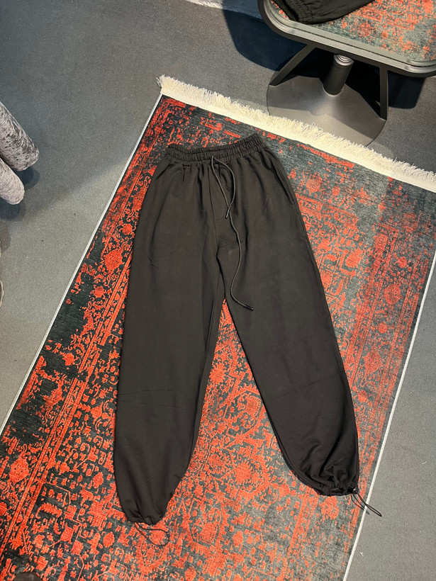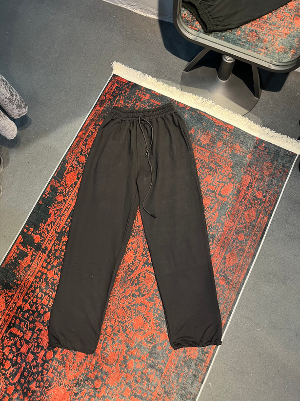 شلوار جاگر مشكي پايين دمپا يه كش با كيفيت كار شده كه شما ميتونين شلوارو هم به صورت بگ استايل هم گت به صورت جاگر بپوشين جنس پارچه اش هم سه نخ وارداتي داخل خار خورده است و مناسب فصل