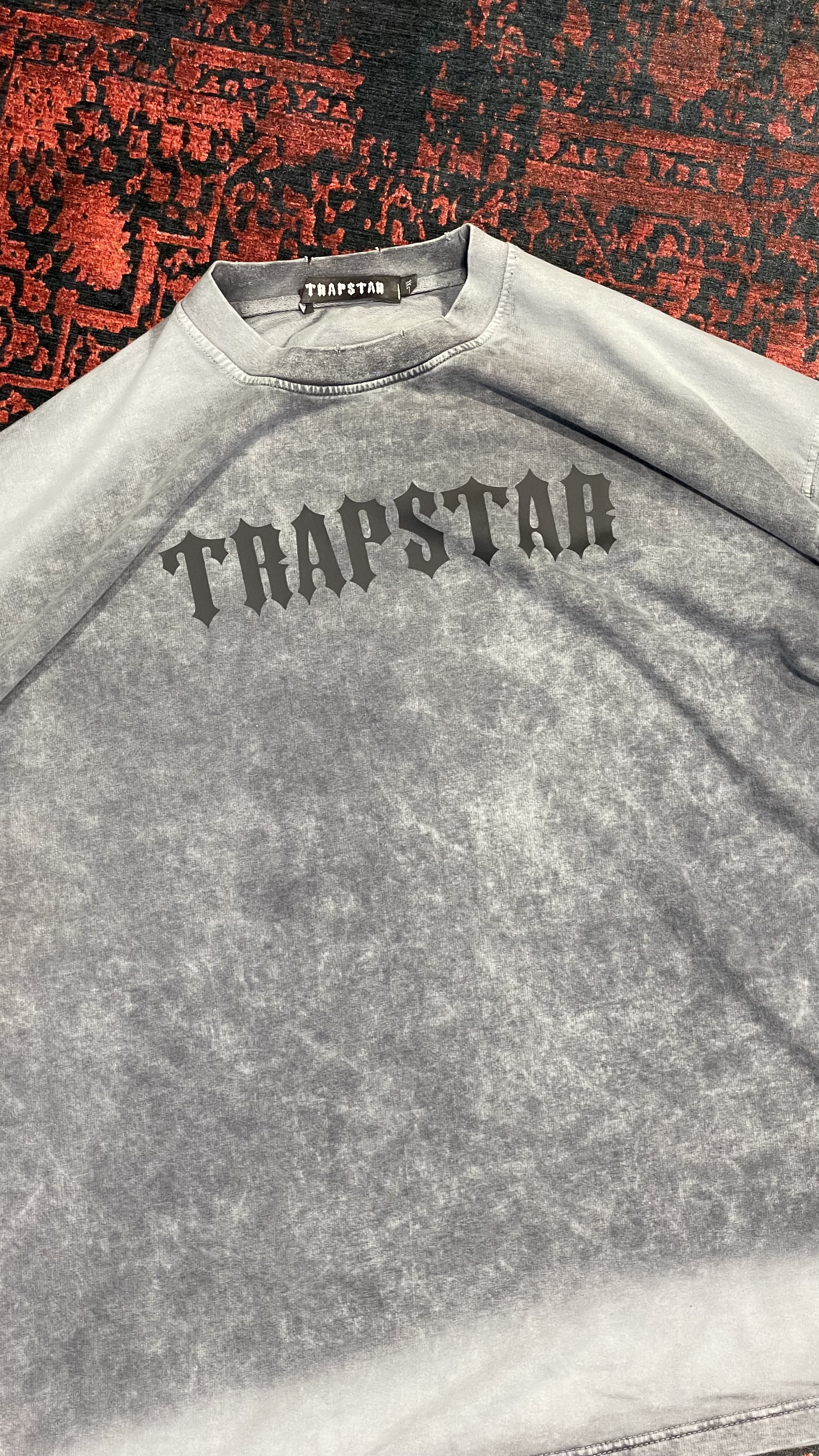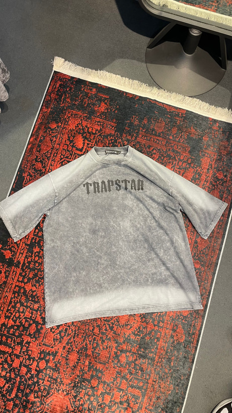 تيشرت ترپ استار تلفيقى از رنگ مشكى و طوسى و دودى سنگشور شده جلوى كار لوگو اورجينال TRAPSTARخورده اونم با يه فونت انگليسى هاليوودى آستين و گردن كار تيكه تيكه بريدگى داره كه جديدترين مد تيشرت امريكارو رغم زده