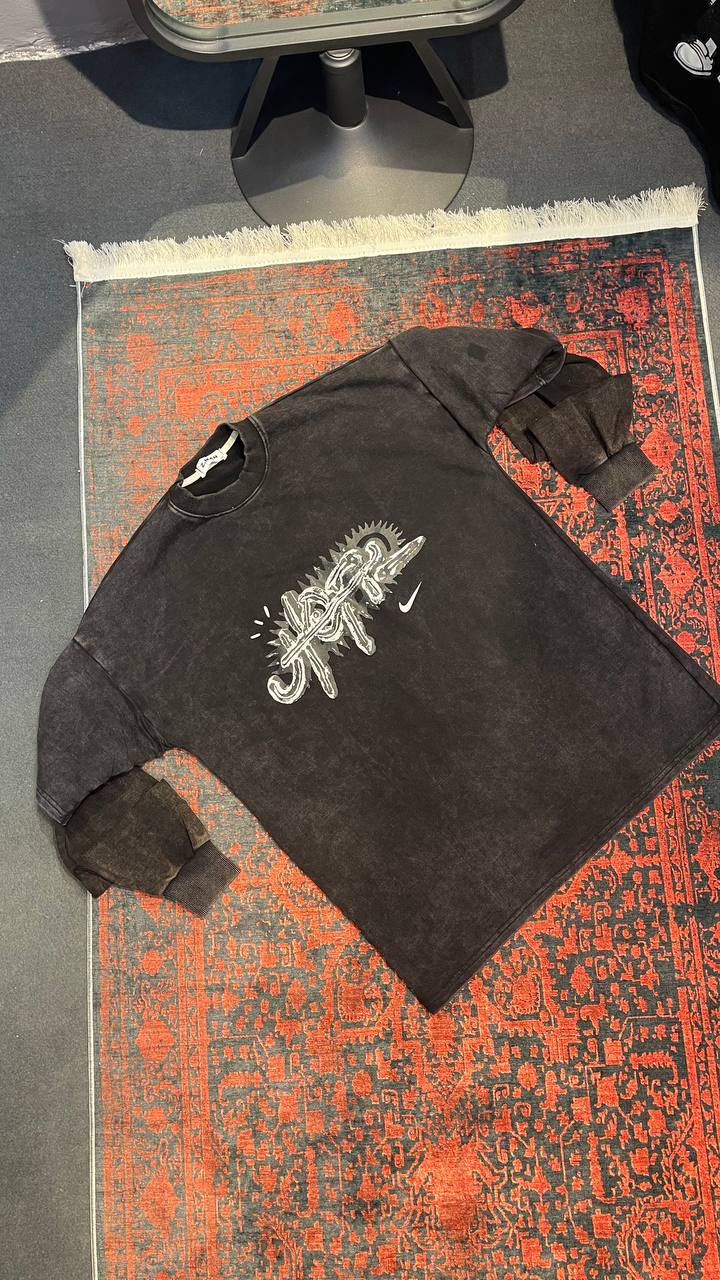 دورس نایک 3 نخ پنبه استین دوبل مشکی (وارداتی)